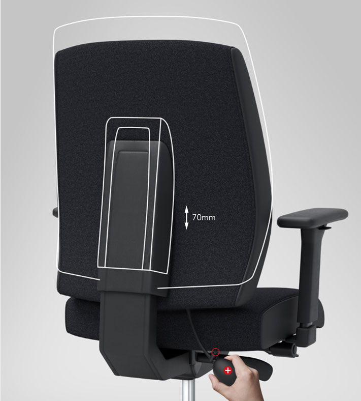 Seat depth adjustment and seat front tilt function. Keeps your back in