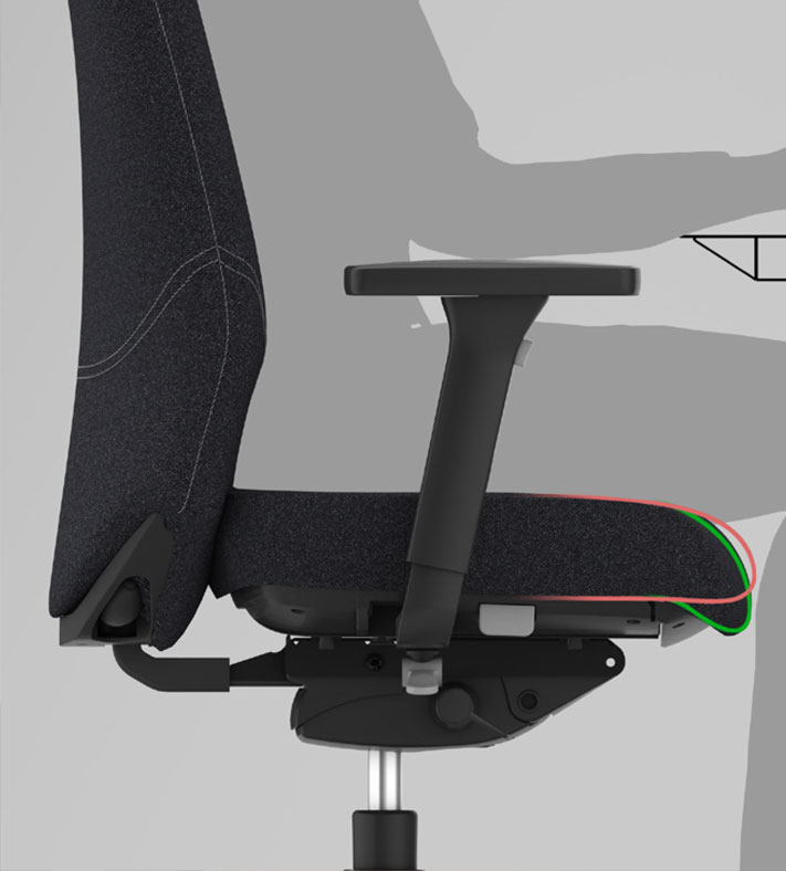 When the user is leaning on the back for a rest or sitting on the front edge of the seat, the seat front will bend down and relieve the pressure of thigh, reduce the situation of thigh numbness caused by long sitting.