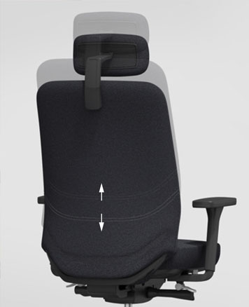 The contoured headrest provides better comfort and increased stability for the user’s head and neck. The rear joints allow the position of the headrest to be adjusted in height, depth, and angle.
