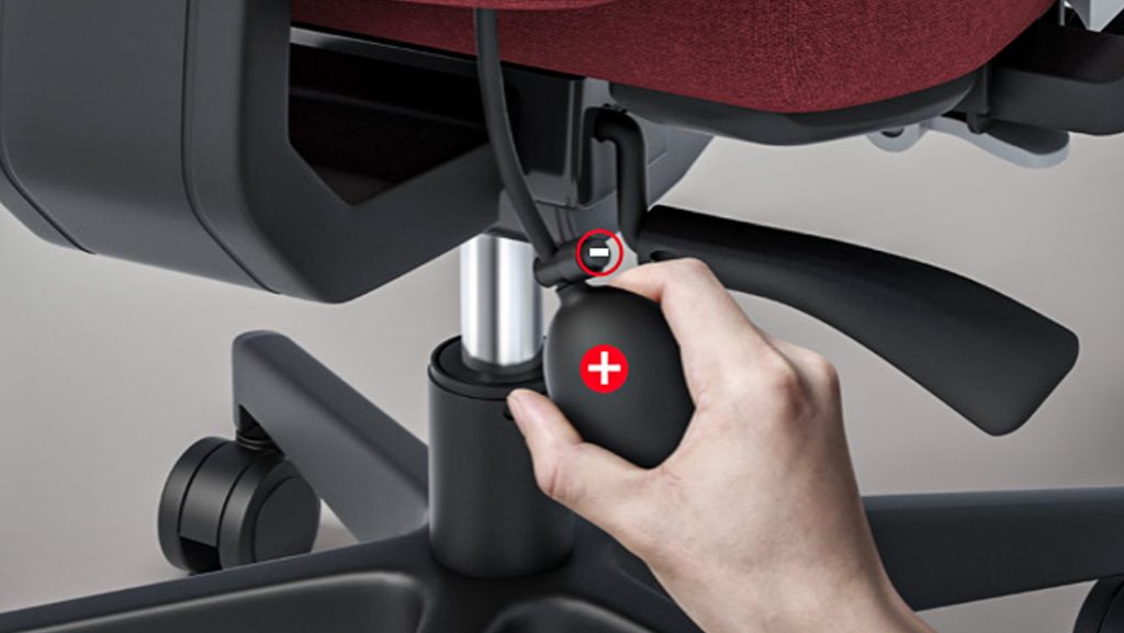 Backrest. If the backrest is separate from the seat, it should be adjustable in height and angle. It should be able to support the natural curve of the spine, again with special attention paid to proper support of the lumbar region. If the office chair has the seat and backrest together as one piece, the backrest should be adjustable in forward and back angles, with a locking mechanism to secure it from going too far backward once the user has determined the appropriate angle.