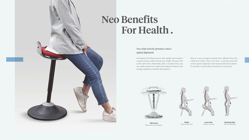 Neo offers a range of chairs specially designed for those who work at raised workstations or switch between sitting and standing positions.